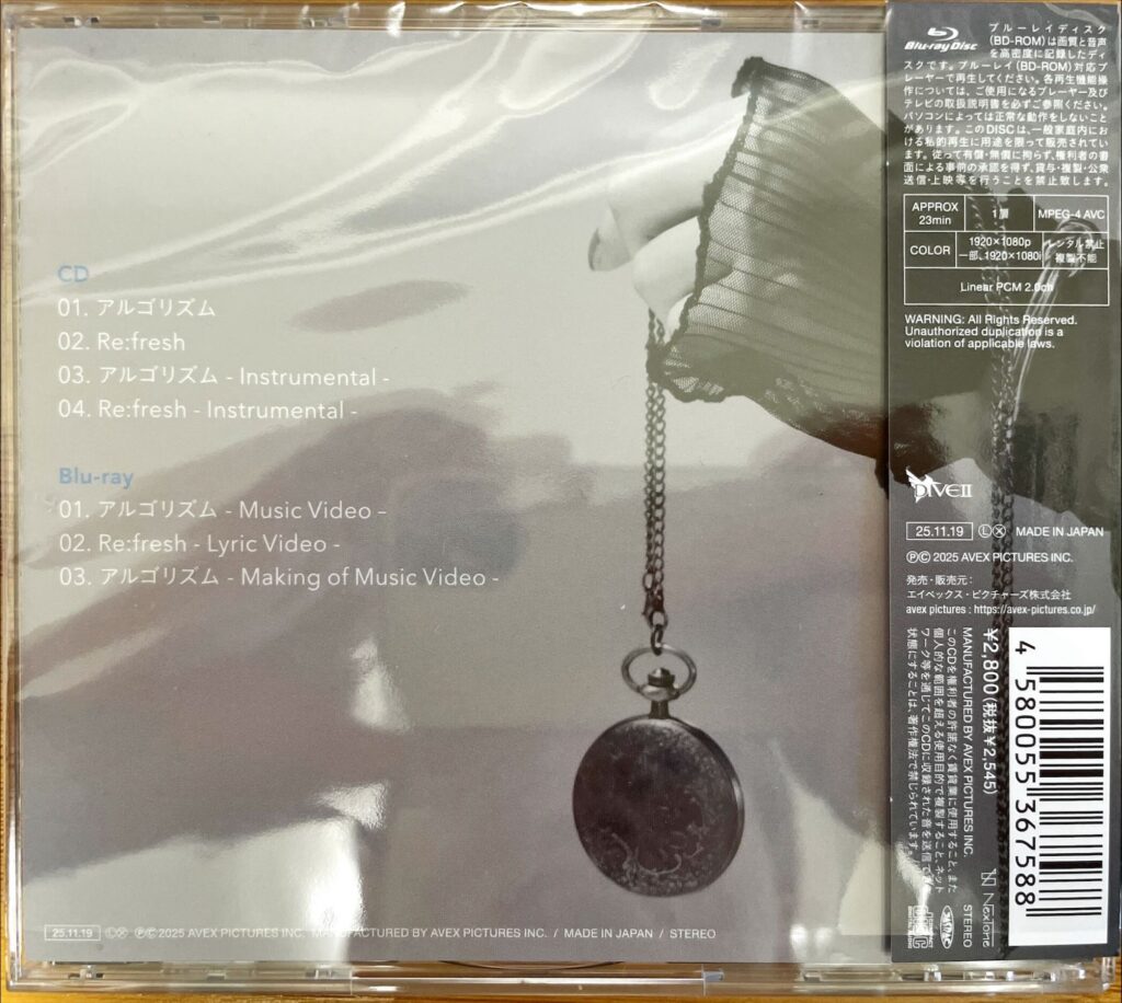 ライブグッズは以上なのですが、以前発売されて今回のライブでも披露されている楽曲『アルゴリズム』のCDを紹介できていなかったので紹介させてください。