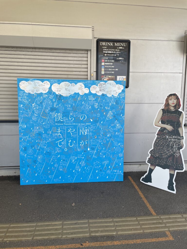 更に物販の隣には、安野さんの全身パネルと、ファンによるメッセージボードが展開されていました。